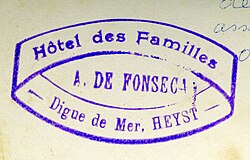 - @Smiley.toerist: There was a couple of hotels in Gibraltar that used handstamps like the Bristol Hotel and Grand Hotel. It's definitely a niche of a niche though. It would be cool to get a collection of them together on here. --Adamant1 (talk) 11:34, 22 July 2025 (UTC)