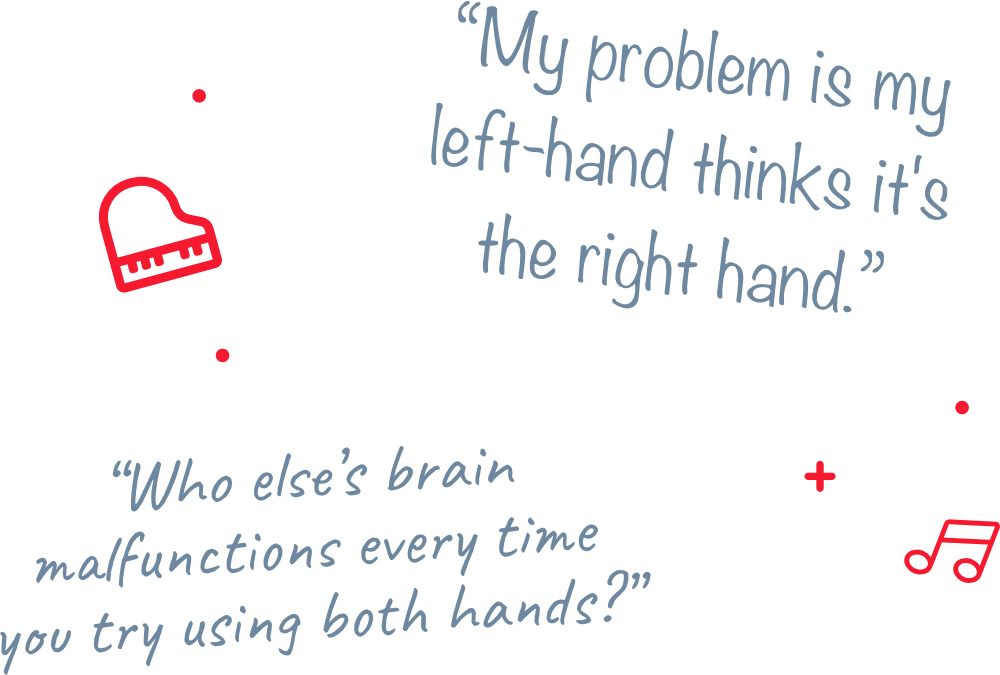 Start from scratch and show your left-hand what to do. Because once it knows what it’s supposed to do, we can put it to work. In this section, you’ll get the basic skills of keyboard familiarity and finger independence. So your fingers will move when YOU want them to — not on their own.