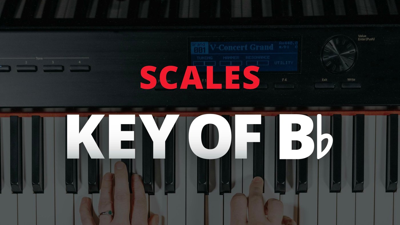 The B-flat major scale contains seven notes and starts and ends on B♭. Major scales are arranged in a specific pattern of whole and half steps: W-W-H-W-W-W-H.