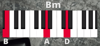 A B-minor chord has the notes B-D-F#. Now you should notice there is no F# here, and there’s an A! That means this is actually a B-minor-7 chord (Bm7). The A is the 7th note of the B minor scale. I love 7th chords, and we have a full lesson on them here.