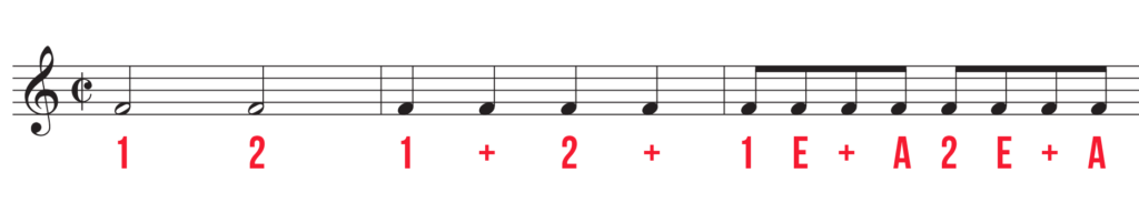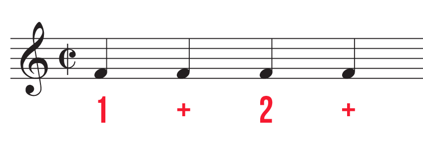 So what makes cut time different from common time or 4/4? After all, both time signatures can fit four quarter notes per measure.