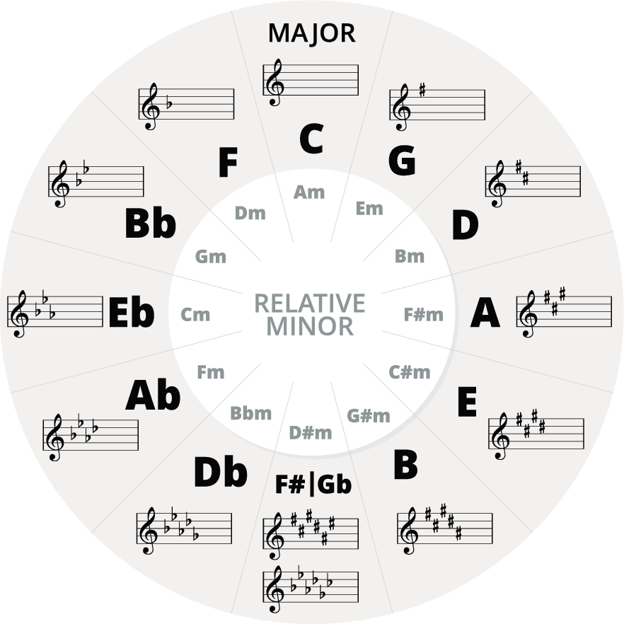 Basically the Circle of 5ths is designed to help you know and learn all the scales and key signatures. You can learn every major scale and its key signature — and you can learn all the relative minor scales.