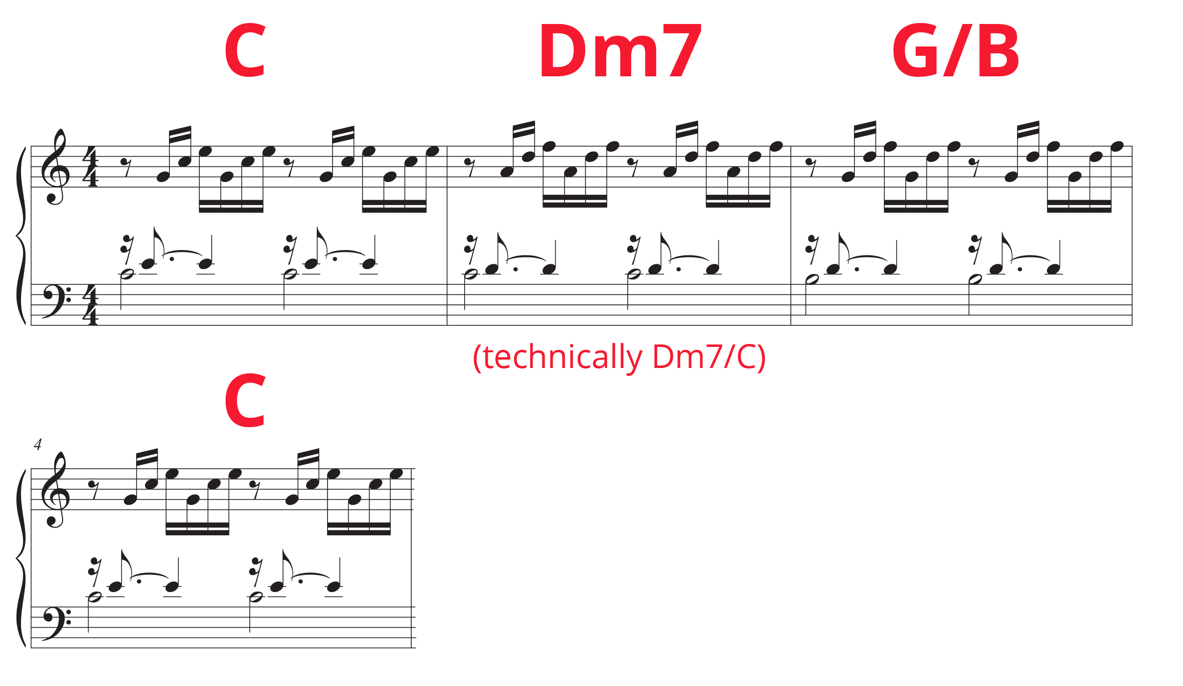“Prelude in C” also has some pretty easy chords to improvise upon. The little section we’ve chosen has this progression:
