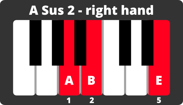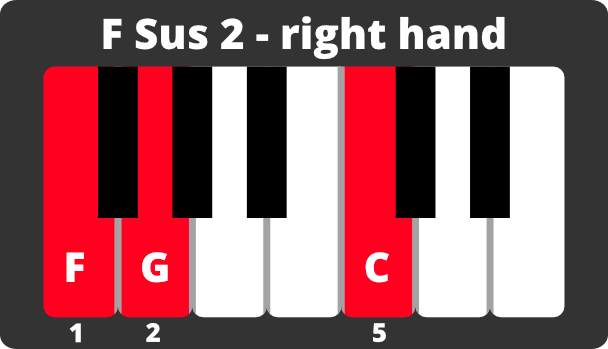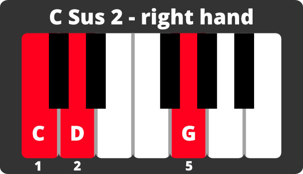 Once those sus chords are under your belt, break up the notes and match them up with your left hand. It’s okay to slow down in order to practice this.