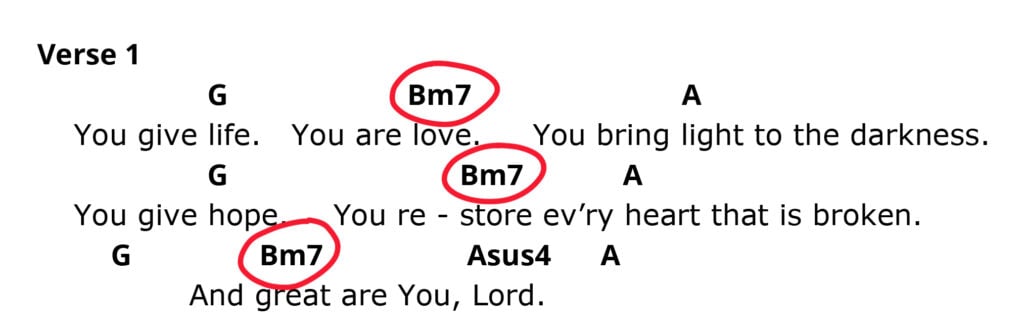 You’ll notice that in this song, we have a minor 7th chord!