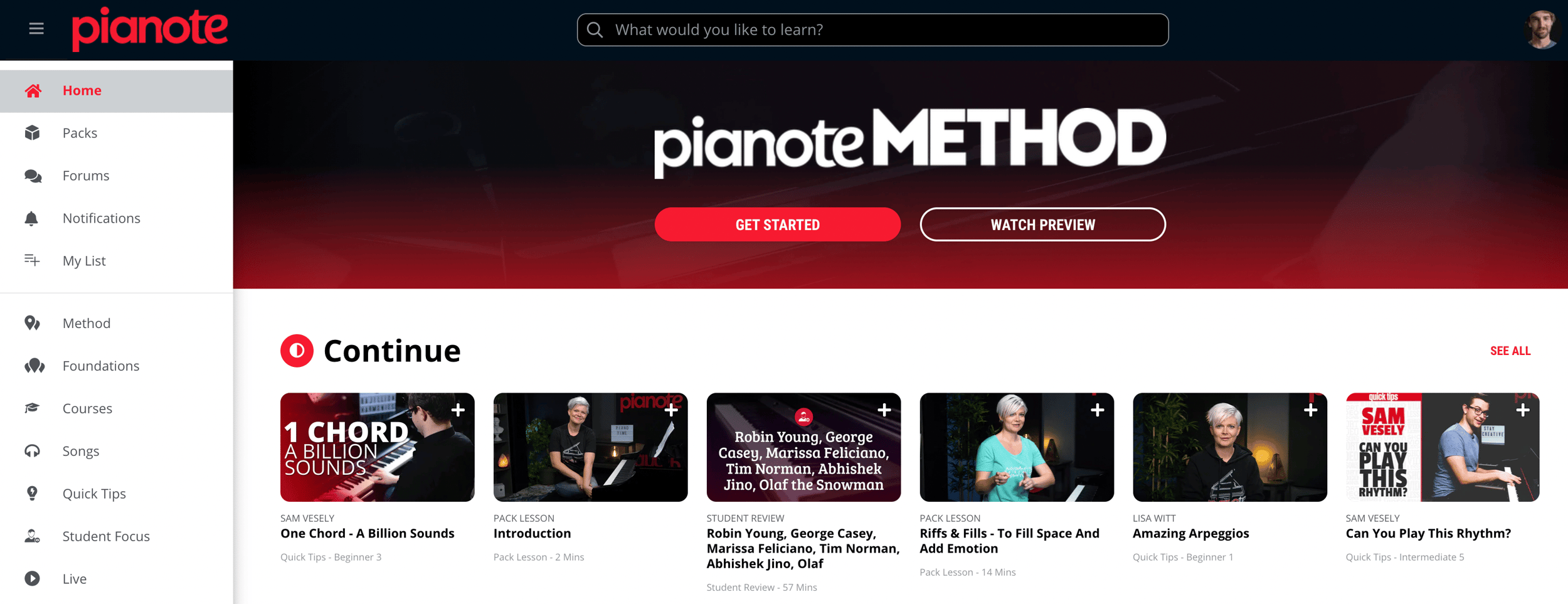 There are a lot of advantages of learning piano online, but one of the biggest is the availability of the lessons anytime, anywhere. Plus, the community is going to be a huge part of your experience and one of the best resources you’ll have for learning and creating a sense of meaning around what you’re doing.