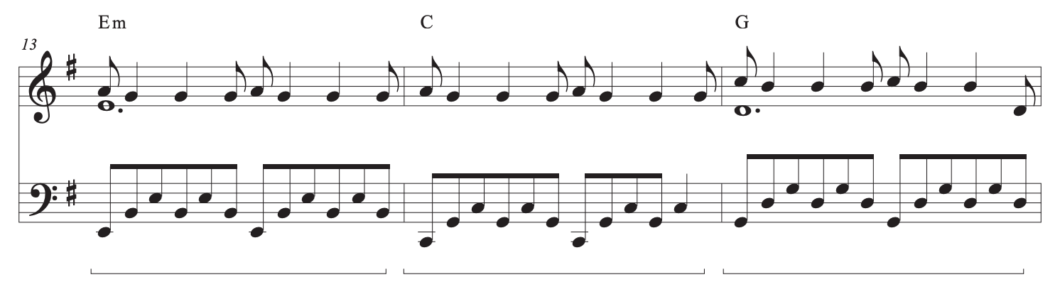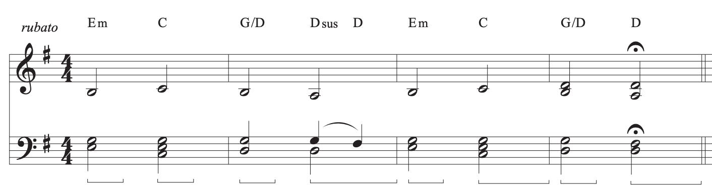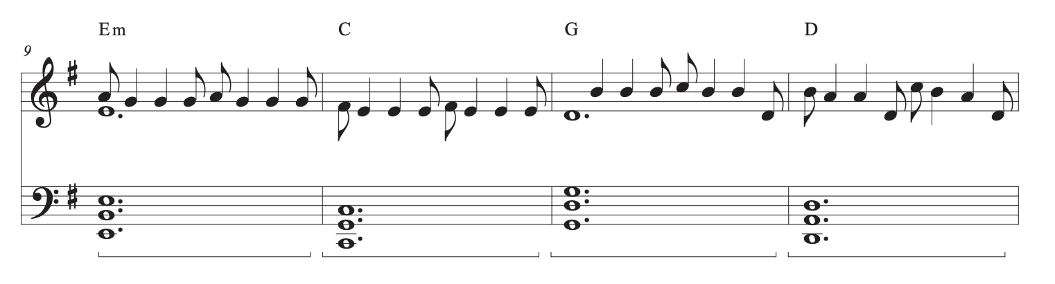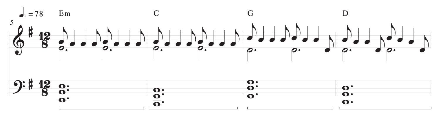 What I love about this piece is that the underlying structure is simple and very common. This piece doesn’t use any crazy chords and the progression simply repeats.