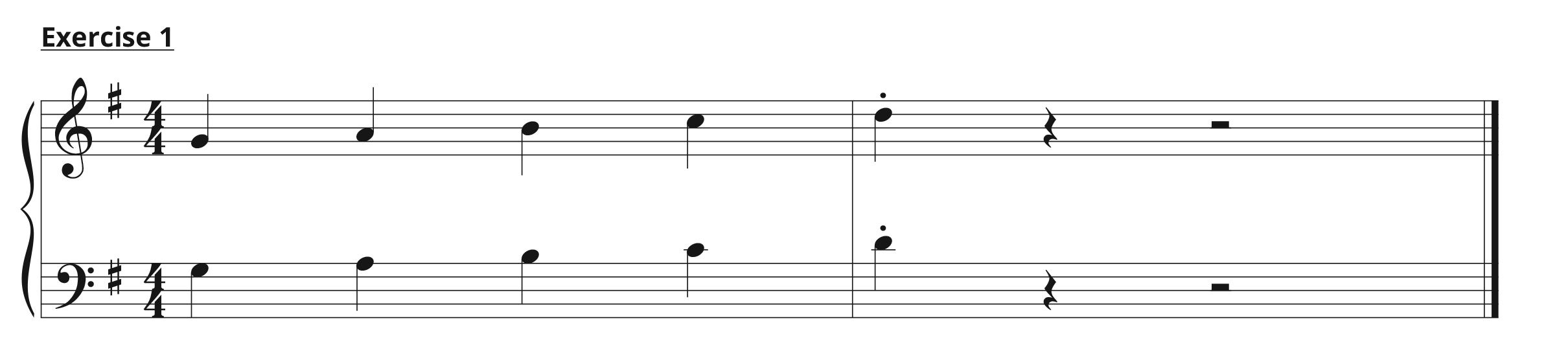 The first exercise we’ll do is super simple. It’s just the first five notes of the G scale with a lift (staccato) at the end.