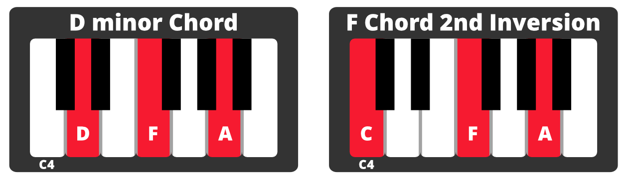 You can see we have a D minor chord and an F chord. So let’s look at each chord separately, beginning with D minor: