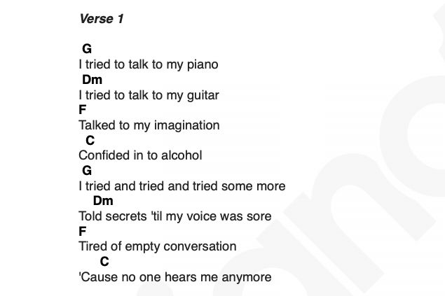 For this song, I have a chord chart in the key of C, which is much easier for beginners. Once you have the chord chart you’re ready for the next step.