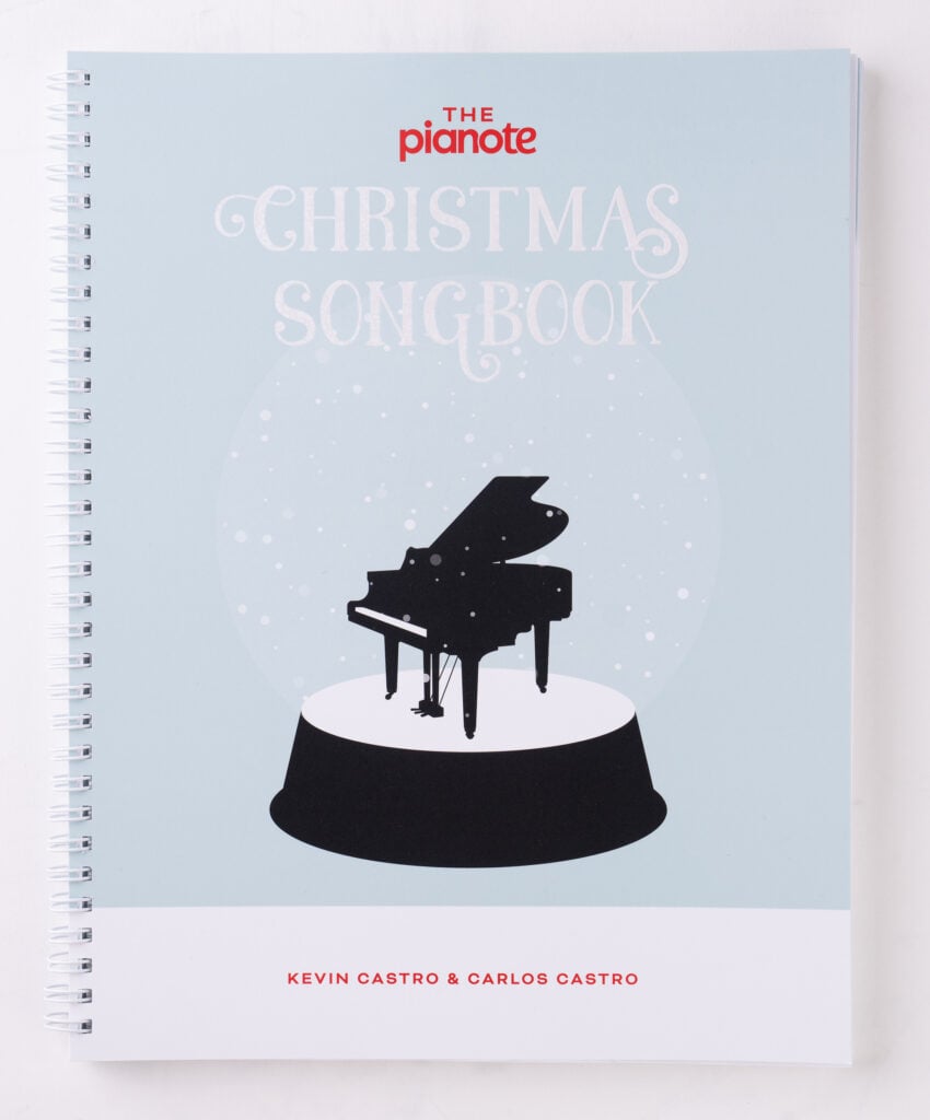 We’re proud to introduce the new Pianote Christmas Songbook! This beautiful, spiral-bound book contains 20 Christmas classics arranged by our in-house father-son team, Kevin Castro and Carlos Castro. Each song is presented in both a traditional and simplified arrangement, along with some expert practice tips.