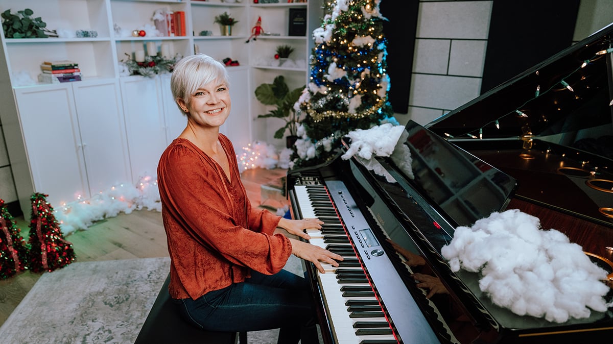 We have a cool “Let It Snow” arrangement that’s jazzy and fun. It can be a little difficult for beginners, though, so Lisa will show you how to simplify the left hand using the chord symbols if you’re just starting out on the piano.