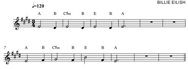 It was written by her brother Finneas O’Connell and we’ll be learning it in its original key of E major. That means FOUR sharps.